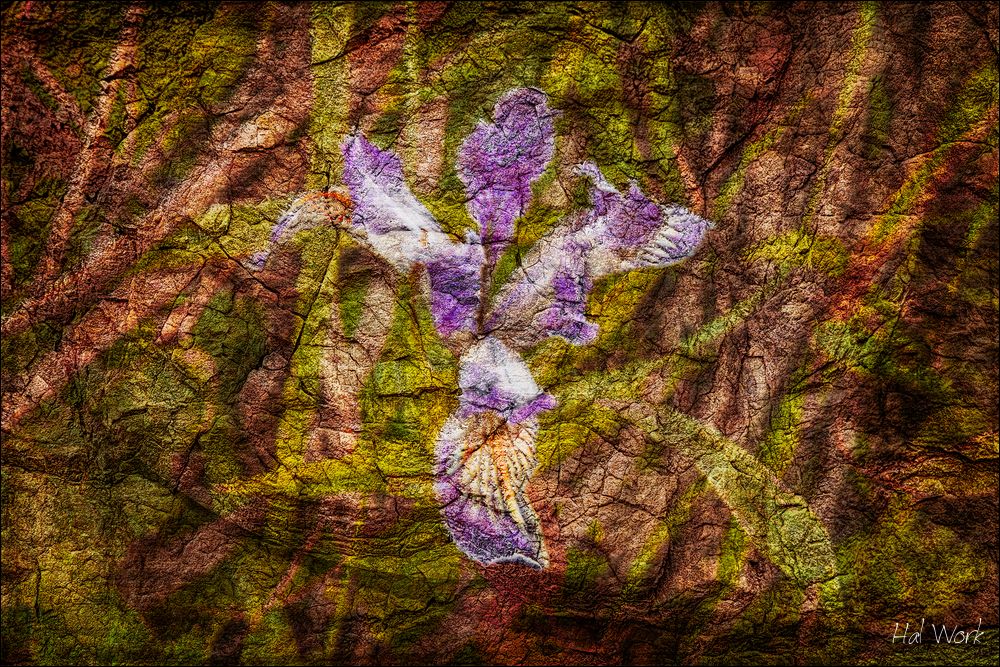 Floral Rock Pictograph – take 2 Image Reply Same image on less smooth, less angular rock face. Used a displacement map to conform the flower to the rock.