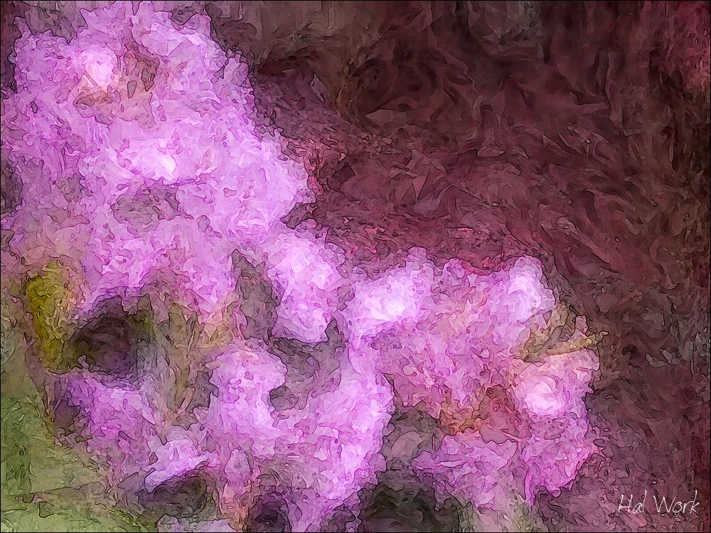 Who knew that Chthulu was pink? Posted on October 6, 2014 by dod488 Reply Had fun with this one. Combined current techniques with some I haven’t used in over 10 years. BTW, those are rhodies. Chthulu really isn’t pink.