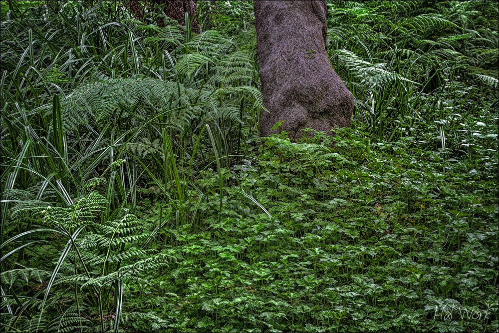 That tree trunk is a fern. It’s about 100 years old and 30 or 40 feet tall. The reason that I’m only showing the bottom couple of feet of it is that as a two year old this is about all of it that I looked at. The green stuff was much more interesting.