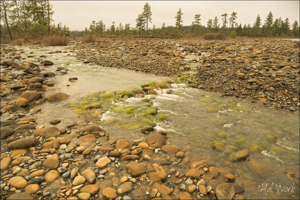 My last photo shoot of 2016 was at one of my favorite places, Rough and Ready Creek near Cave Junction, Oregon. Pam Cone and I took a day trip up there a couple of days ago. I’d been talking about it for years. The temperature was a couple degrees above freezing. We were prepared and didn’t feel it. The day before, where I’m standing was under water. Great timing! There is high fog in this picture and the mountains in the background are obscured.