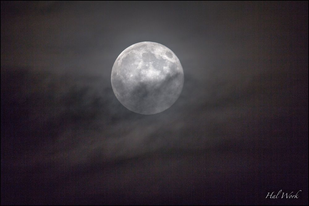 Tonight we drove up to the Kneeland Airport to photograph the big moon. We were all alone with the exception of a fire crew. We went through the gate and across the runway to catch the moon rising over the trees. While waiting, the sunset provided oranges and pinks above us. As the sky darkened, the moon rose behind clouds. This picture is from about an hour after moonrise.