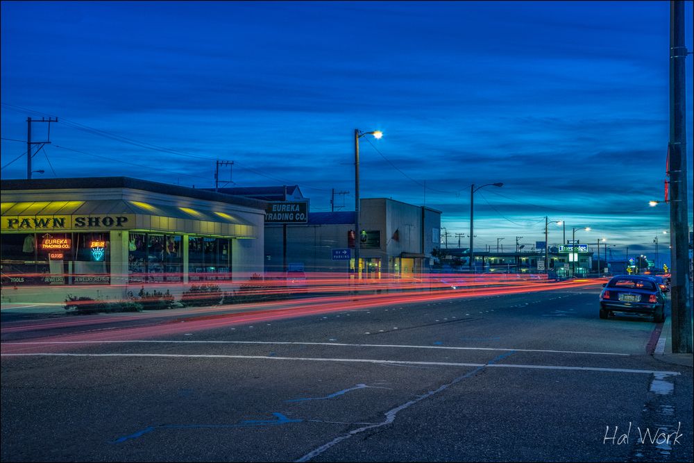 A subset of the Redwood Camera Club went out for a night shoot Friday and braved high 40’s weather. Pam and I went the length of Opera Alley. Then I ventured over to 101 (4th St) to shoot this using a neutral density filter. This was a 25 second exposure.
